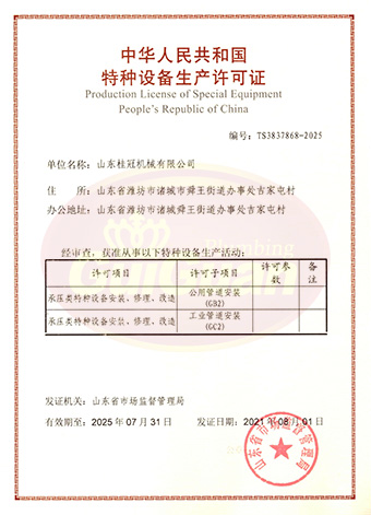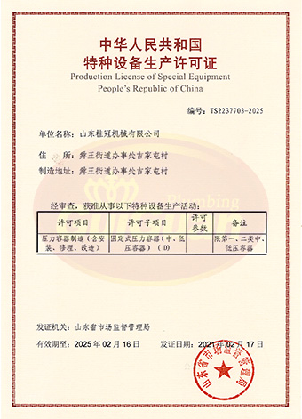 山東桂冠機械有限公司成立于2008年,注冊資金1600萬元,現有員工200多人,中高級技術管理人員45人,占地面積27000多平方米,生產車間面積12000多平方米。公司具備壓力容器產品的設計、制造(證書編號為:TS2237703-2025)、壓力管道安裝(證書編號為TS3837607-2025)全套壓力容器資質;通過國家ISO9001質量管理體系認證、美國ASME認證、歐盟CE認證;擁有建筑安裝機電工程專業(yè)承包叁級資質、建筑工程施工總承包叁級資質及對外貿易經營出口權…